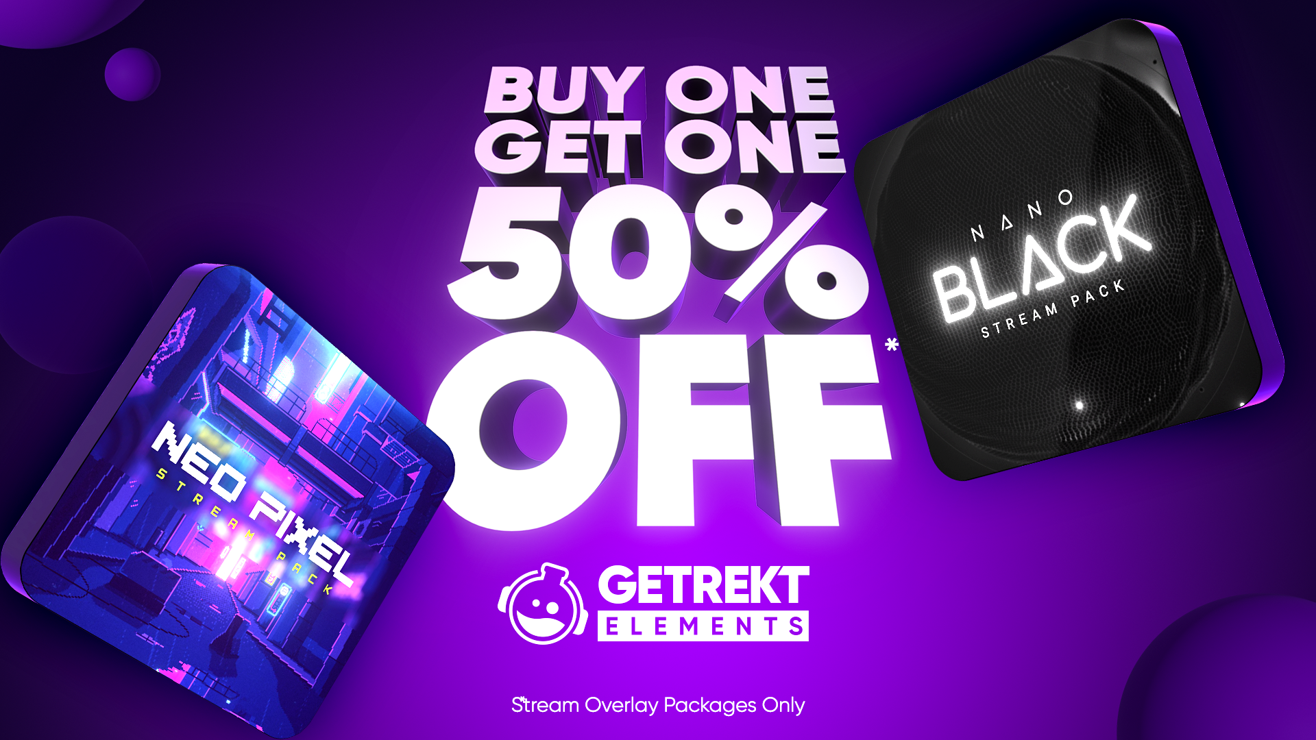 GETREKT Elements features pre-made stream overlays and assets, including animated Twitch stream overlays, camera overlays, stream layouts, emotes, alerts, sfx, Twitch panels, scene transitions, stingers, OBS overlays and more – all with an easy 1 click set up in StreamLabs and StreamElements with OBS.