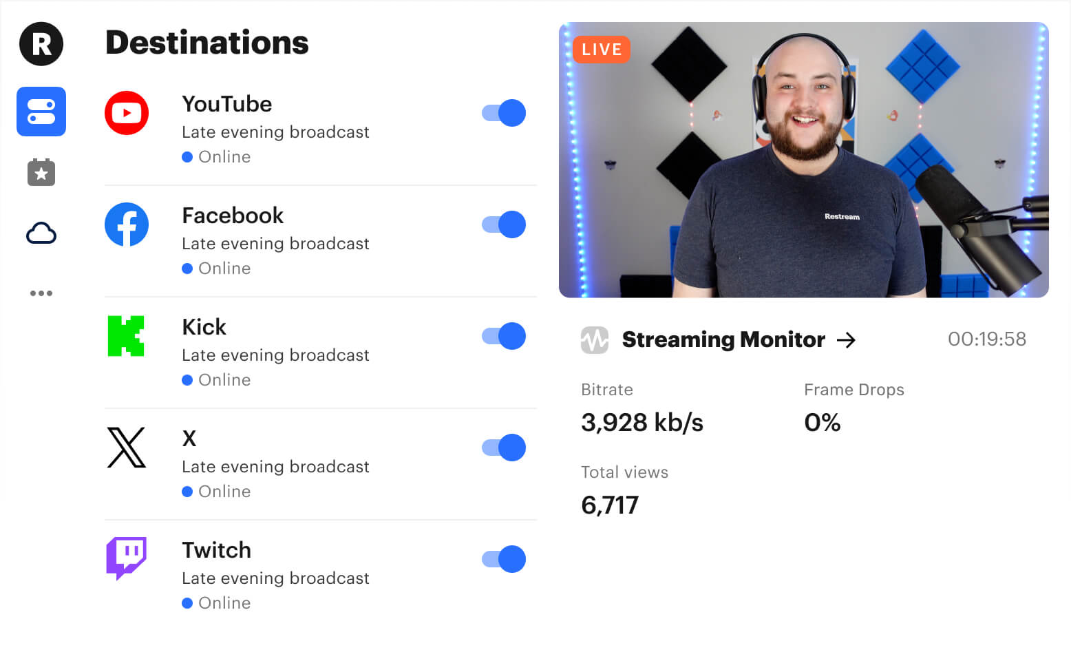 With up to 30 social pltforms supported and multiple channels on a single platform, this works perfectly with OBS and Elgato.