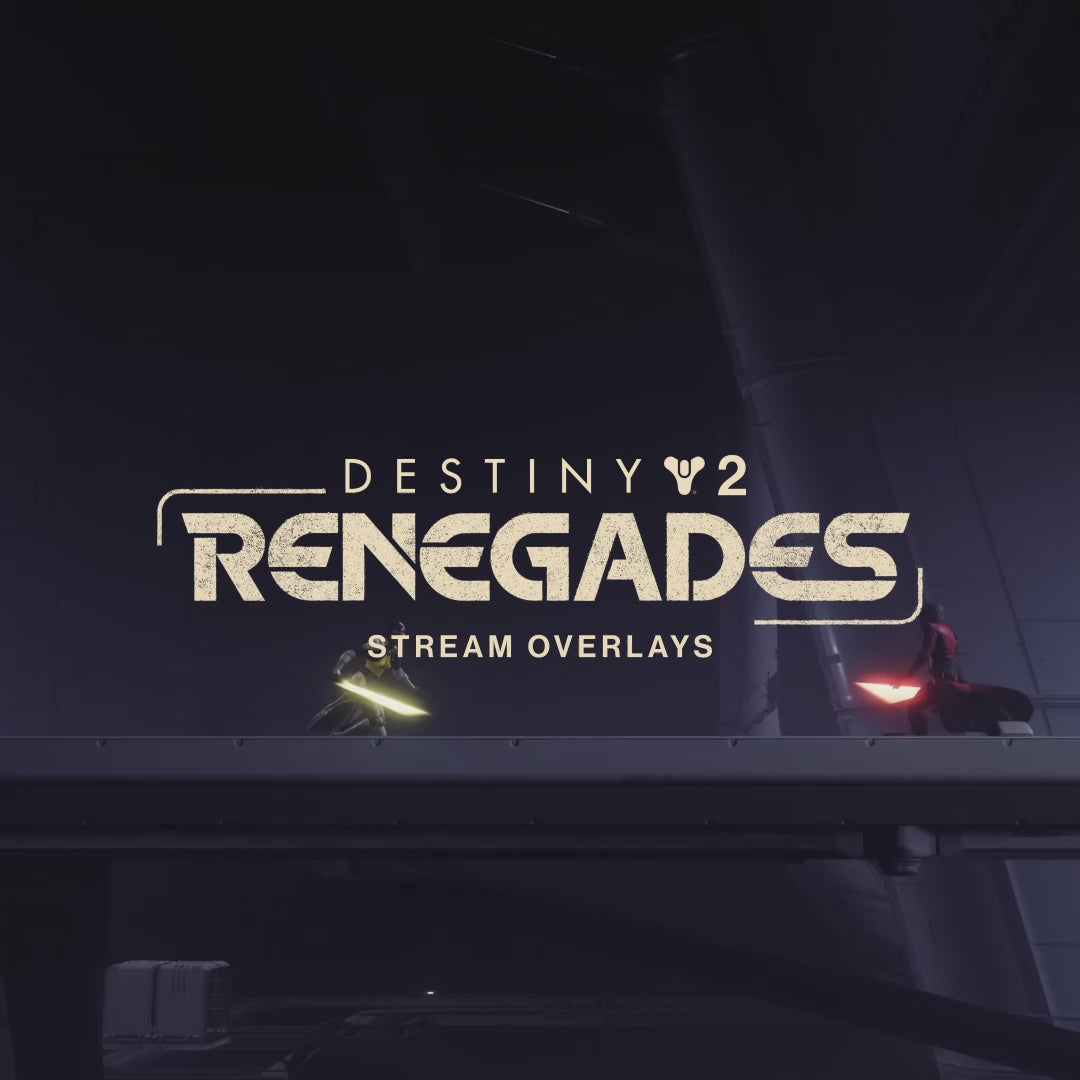 Jump into Renegades, the Star Wars™ inspired expansion for Destiny 2, with this premium overlays package made for streamers. This pack will immerse you in the world of Renegades, which merges Destiny’s distinctive storytelling and gameplay with themes and elements drawn from the iconic sci-fi franchise.